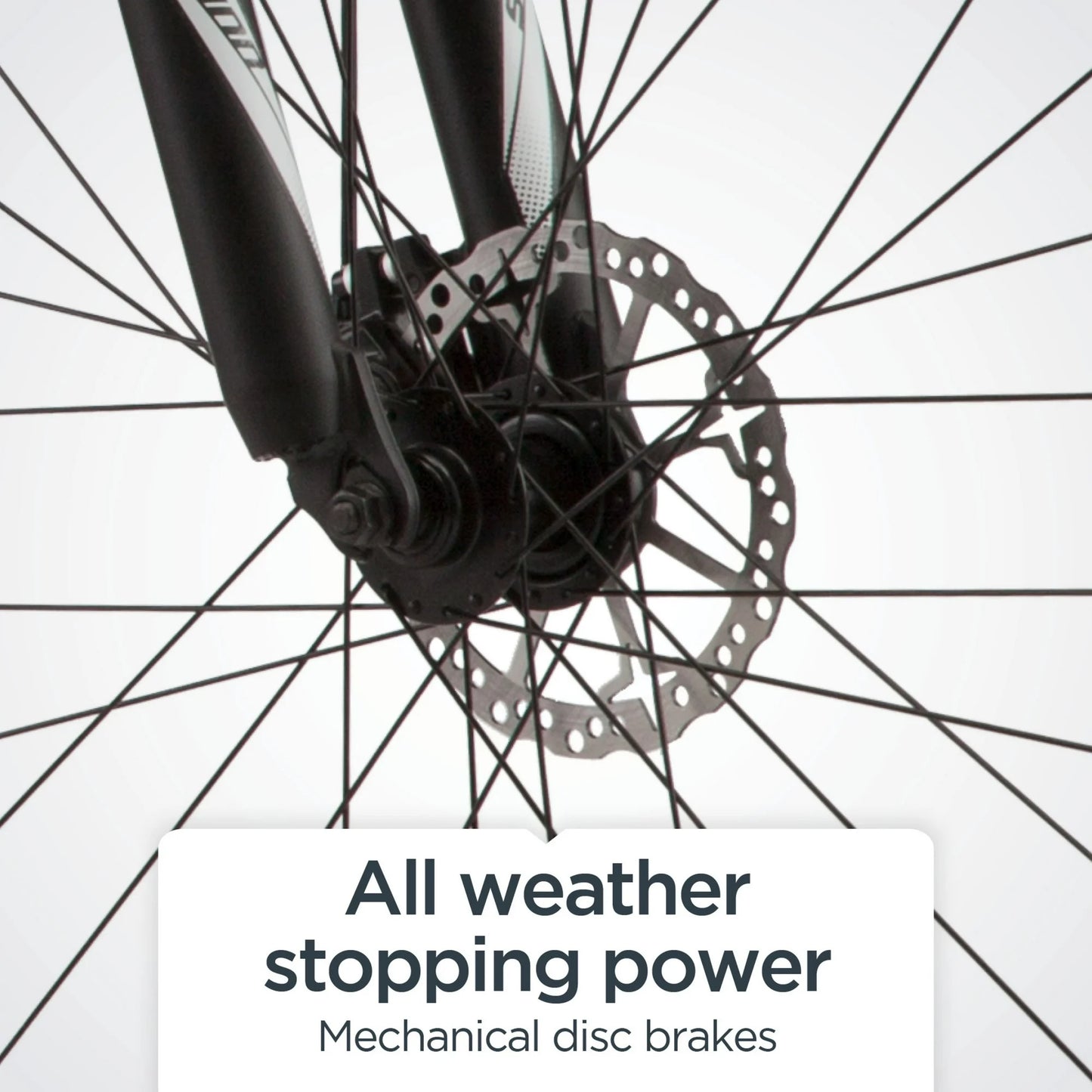 Tooling around the neighborhood? Riding through your favorite park? Or on your way to work? Make your ride the best part of the day with the Glenwood hybrid bike by Schwinn. The Glenwood features a durable steel Schwinn frame and suspension fork that absorbs bumps in the road, giving you a more comfortable ride. 21 speeds let you easily adapt to your terrain with quick, precise gear changes, while the front and rear disc brakes deliver precision stopping power. Plus, alloy double wall rims with dual sport tires are perfectly suited for pavement and bike path rides. Exercise, commuting, or just a little fun – you can do it all with the Glenwood. Enjoy the freedom of riding a Schwinn.