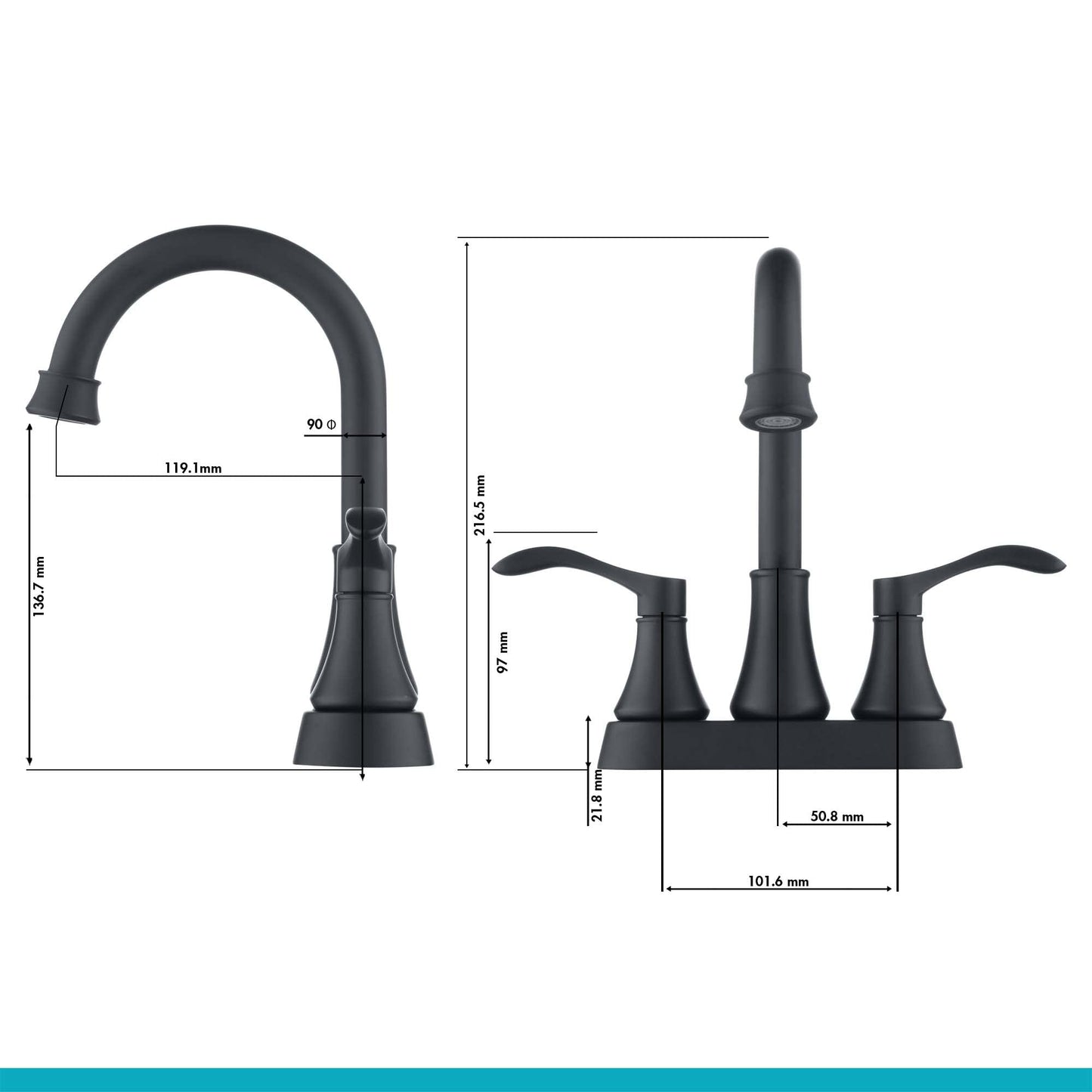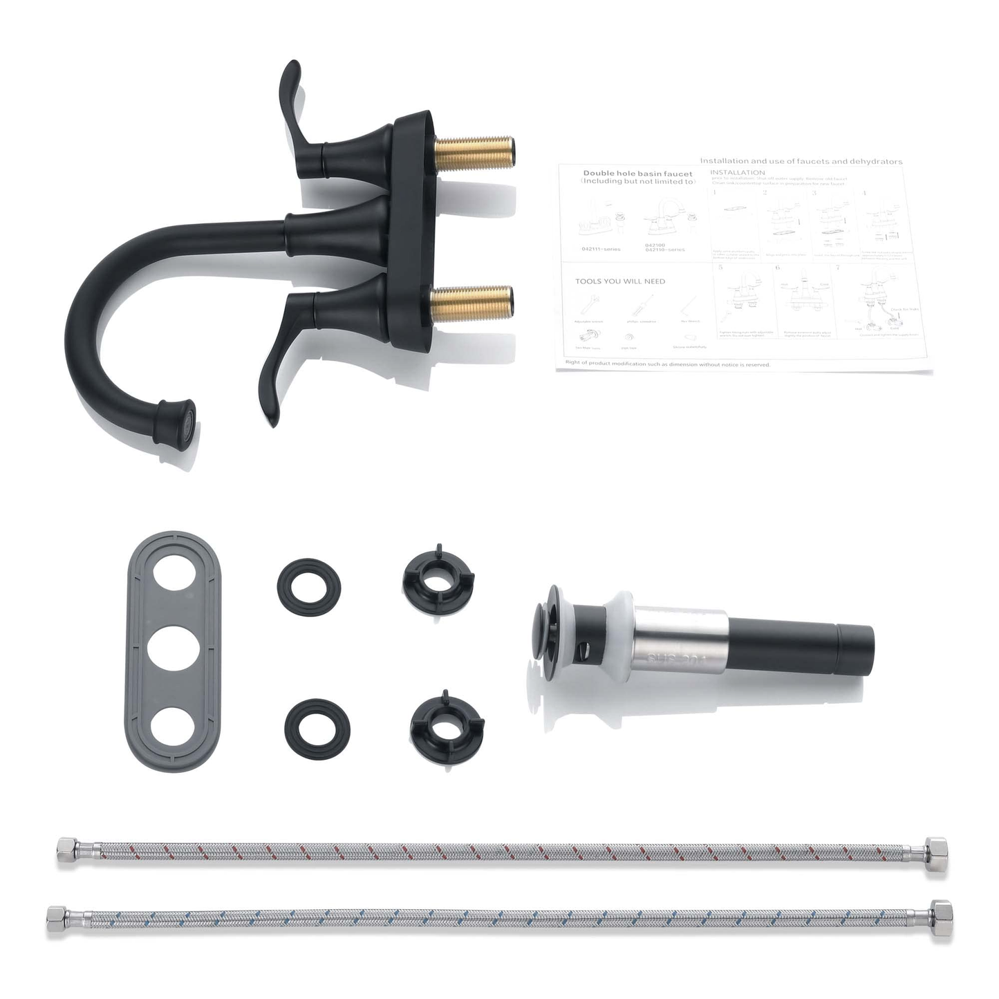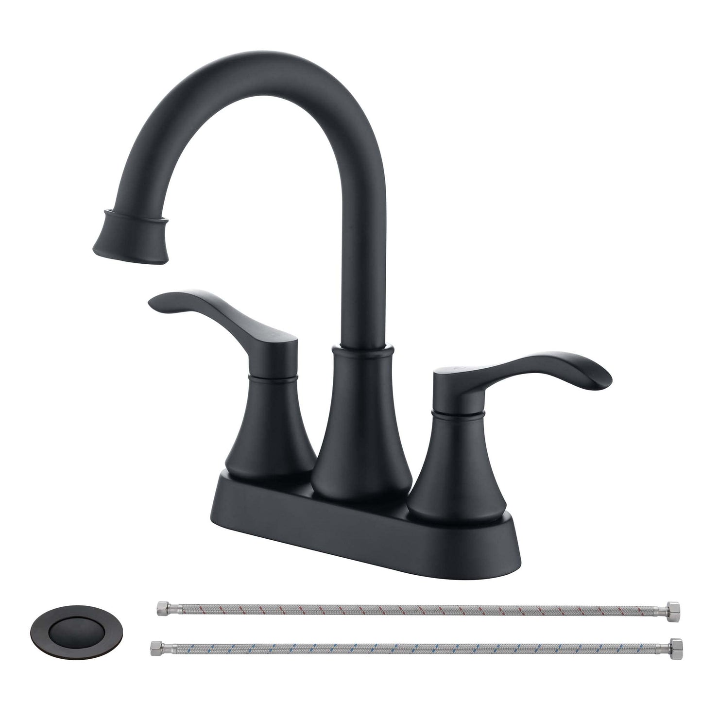 RN-AU042110BK | 2 Handles Bathroom Sink Faucet, Matte Black 3 Hole Centerset RV Bathroom Faucets, with Stainless Steel Pop Up Drain Sets