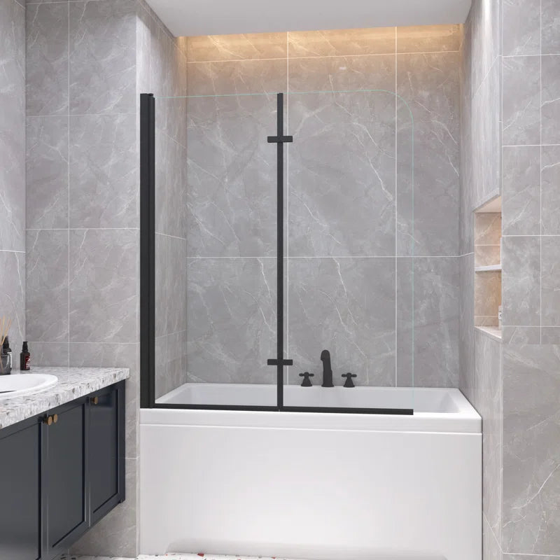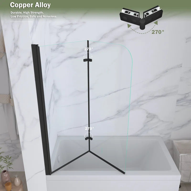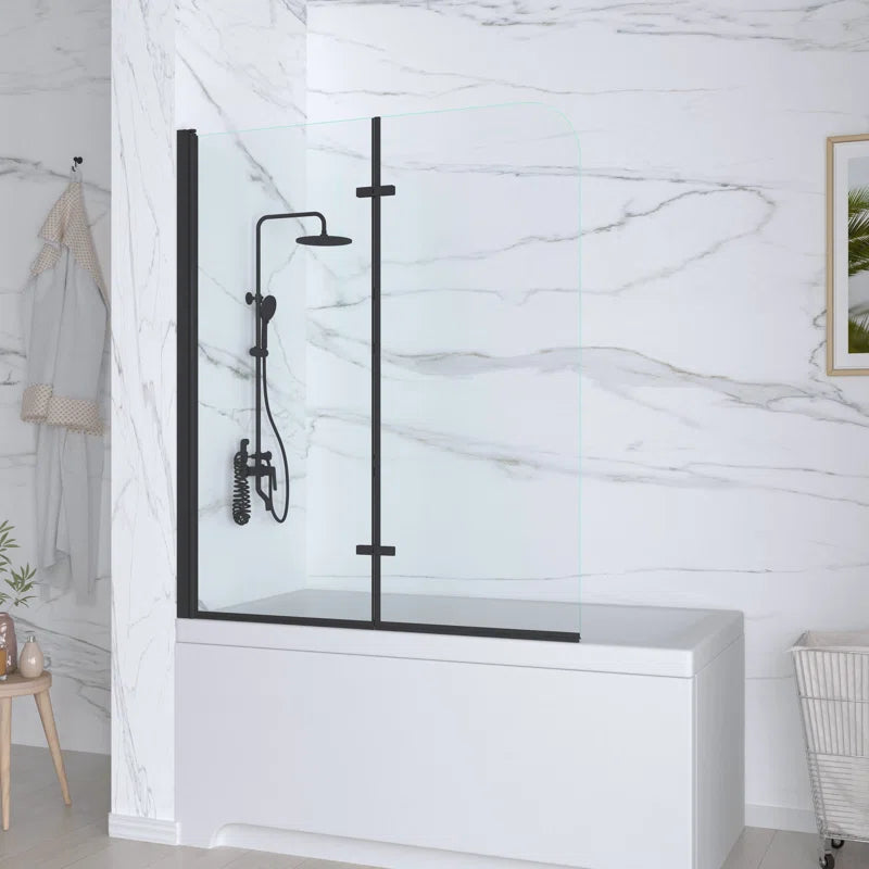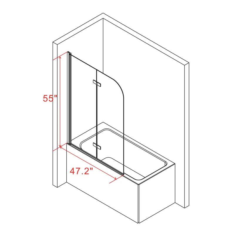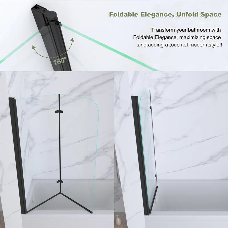 DescriptionThe two folding panels bathtub door blends a fashion look with a sophisticated frameless design. Add a touch of brilliance to your bathroom with the gracefully curved lines of the tub door.