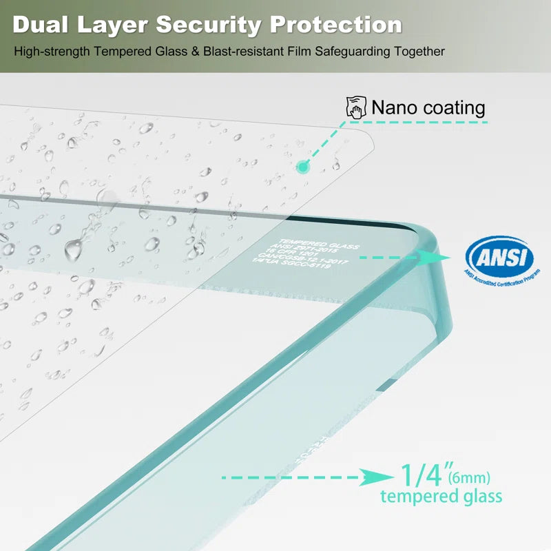 - Nano coating on glass surfaces of shower door can resists water, soap scum, and grime. Helping to clean the bathroom easier.