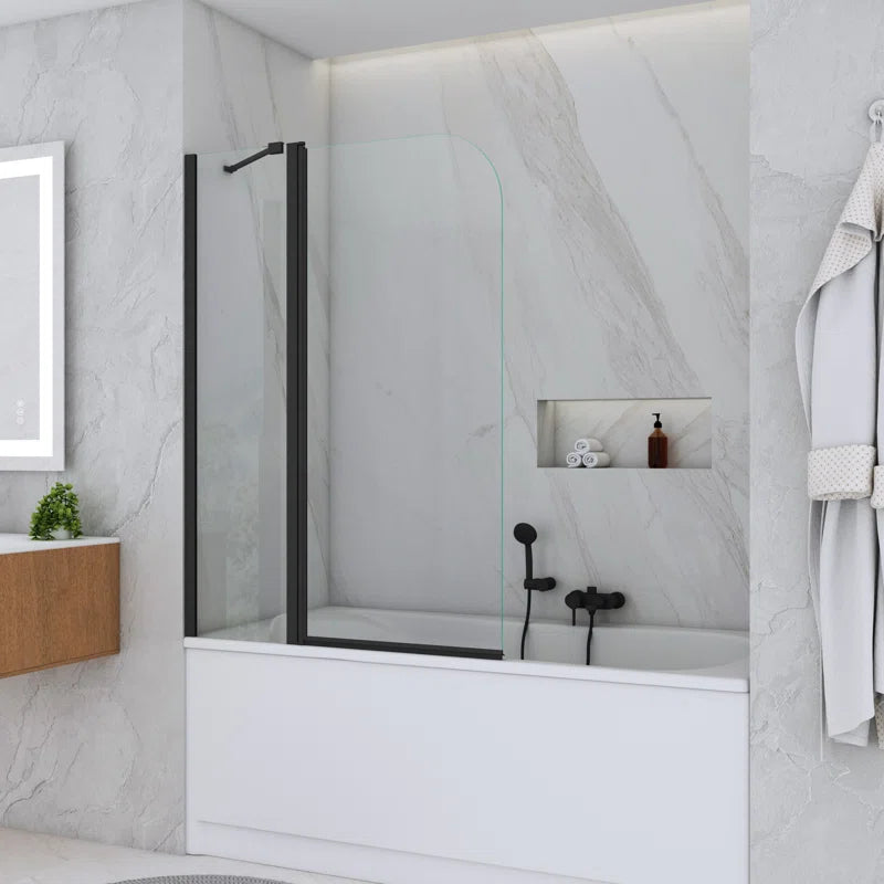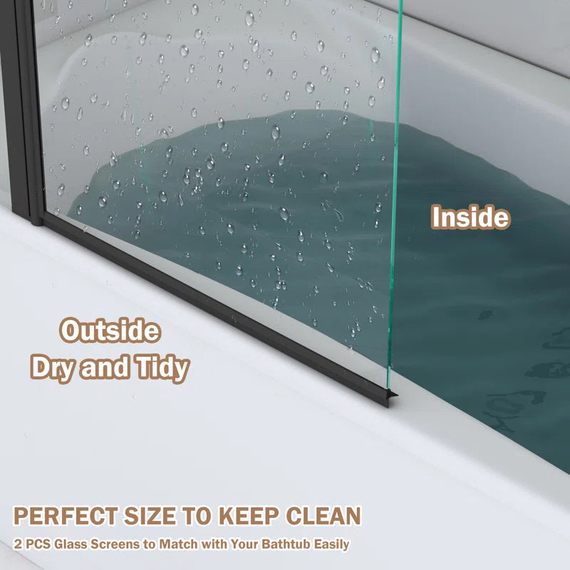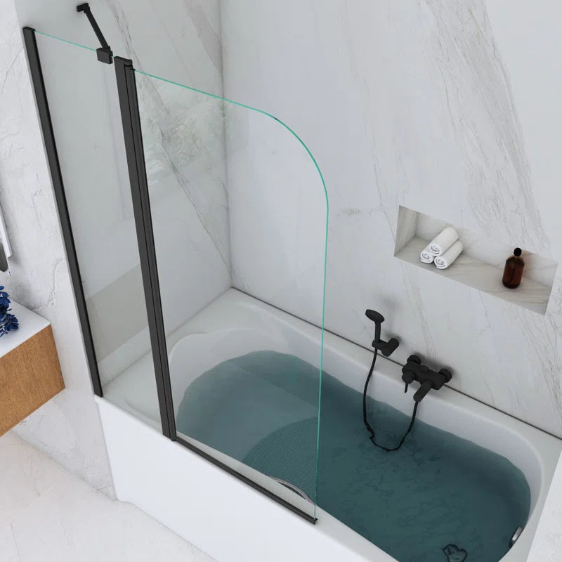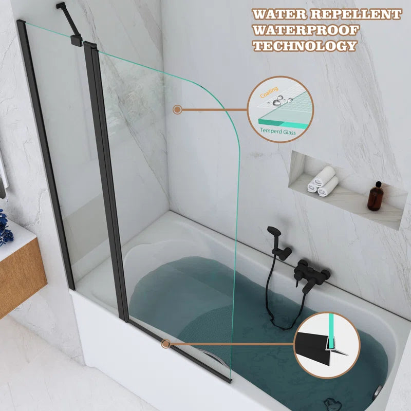 - The tub door is combined with a fixed panel and a foldable panel. The foldable door design can be opened in 180 degrees ,allowing the door to swing both inward and outward.