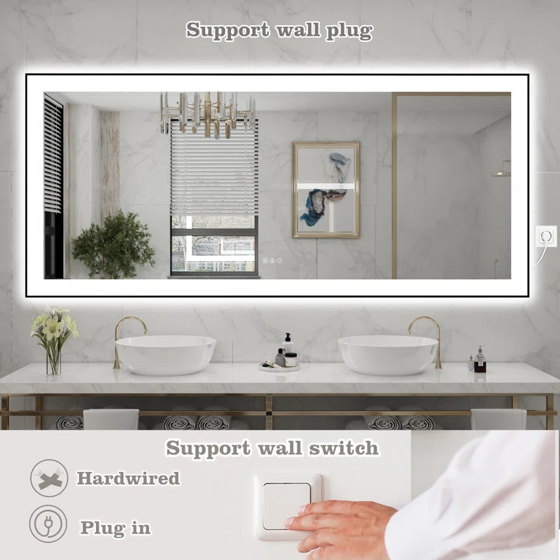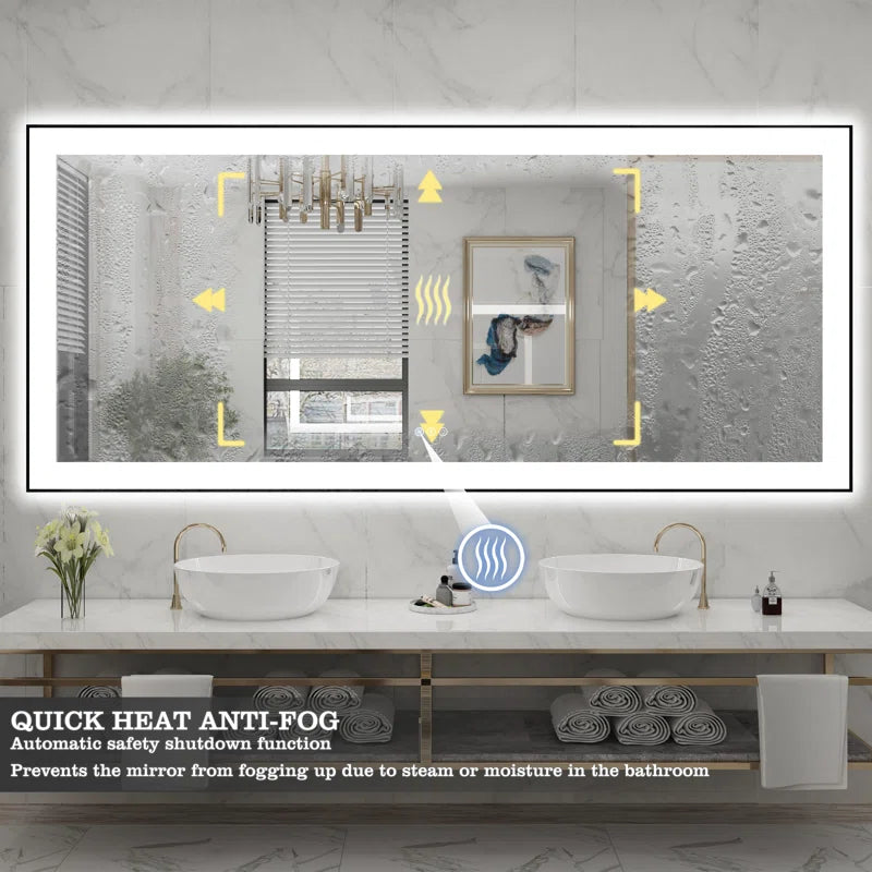 - Anti-fog - Our LED bathroom mirror has an anti-fog function. You can press the button and wait for a few minutes to get a clear reflection image. No worry about wiping the mirror down after a shower. Defogger will stop automatically after 60 minutes of continuous operation to prevent forgetting to turn it off. The anti-fog switches can be switched on and off manually for energy saving.