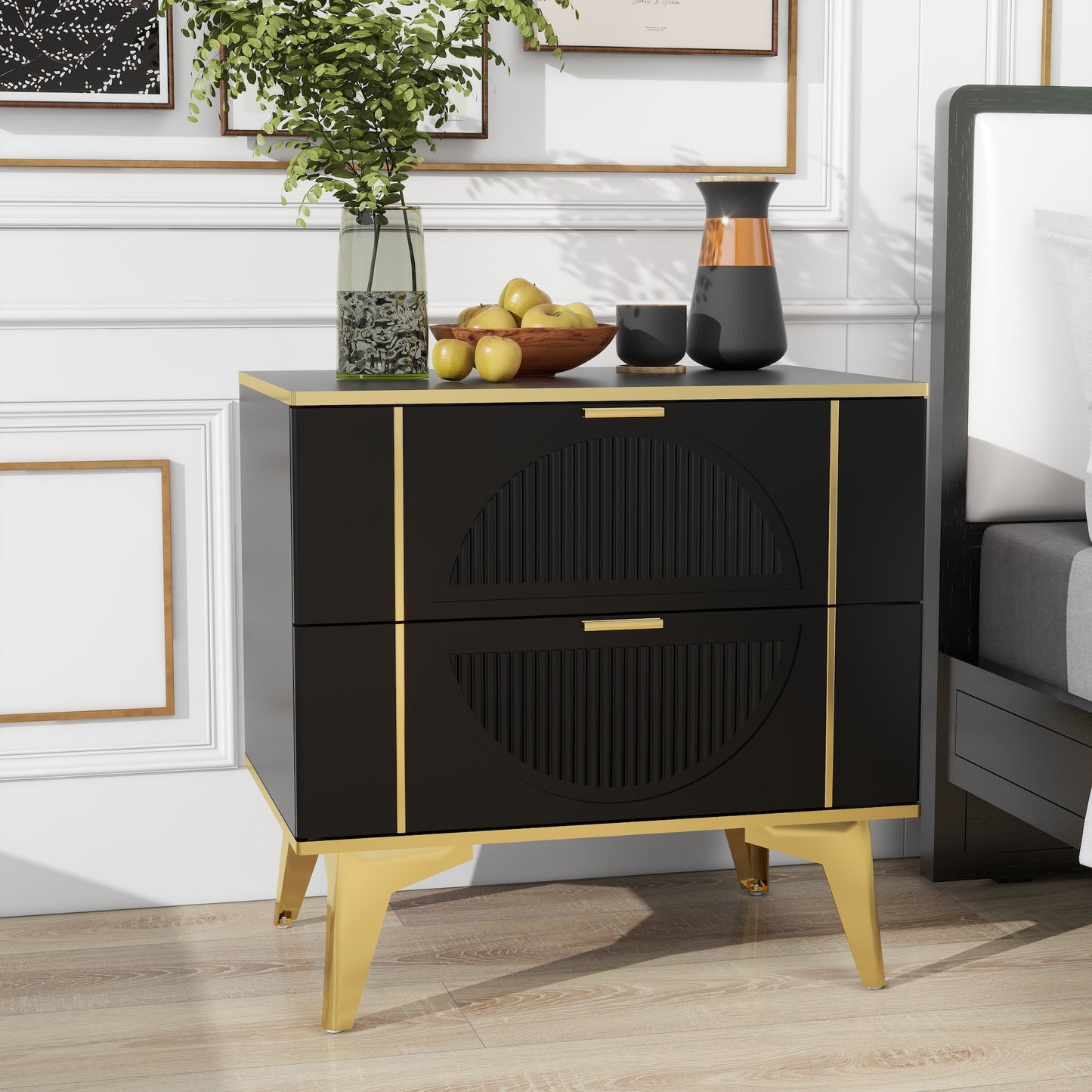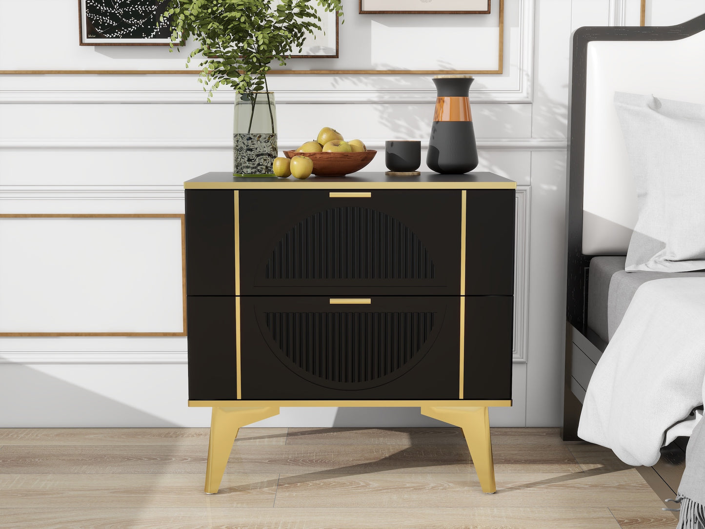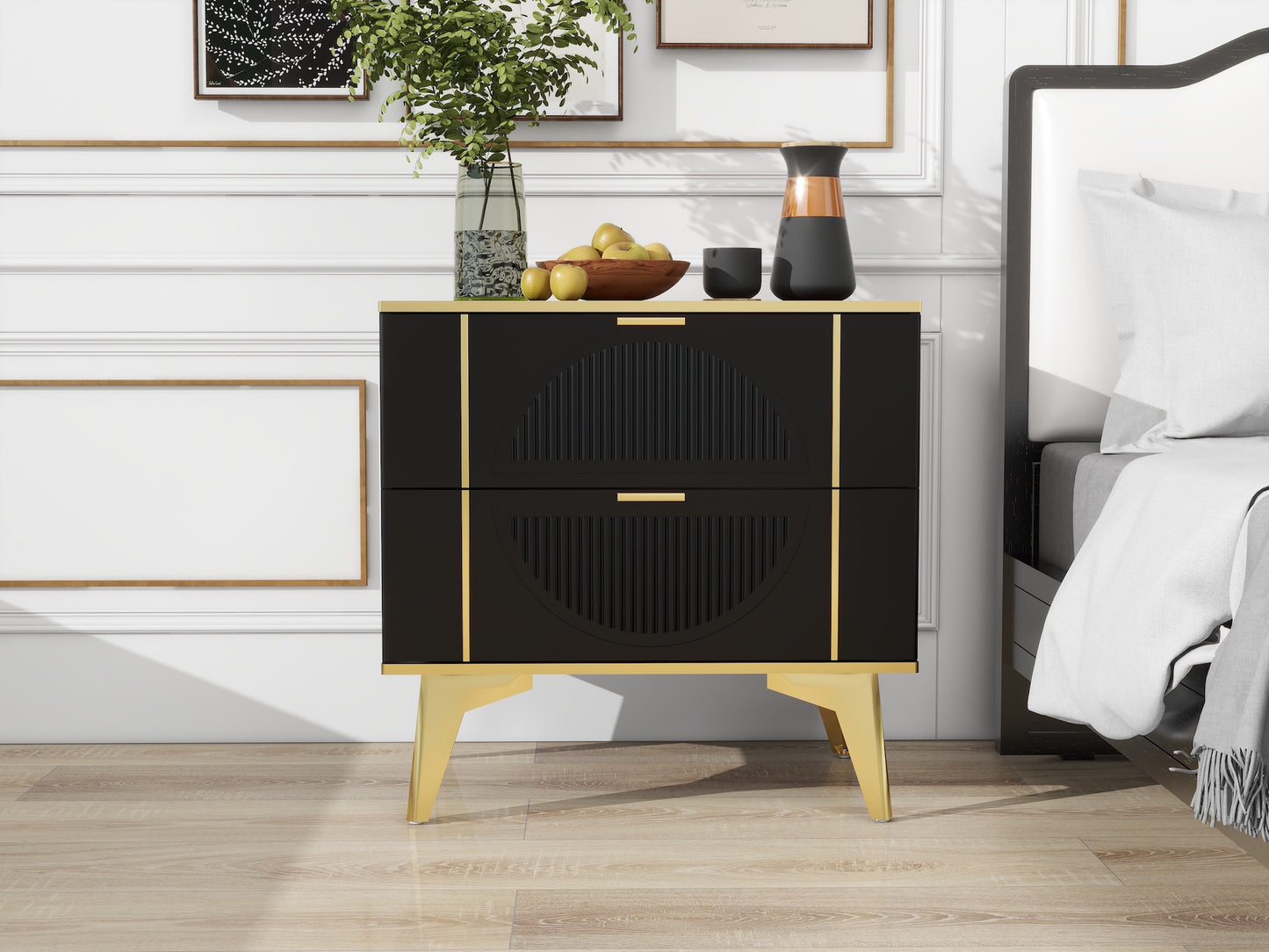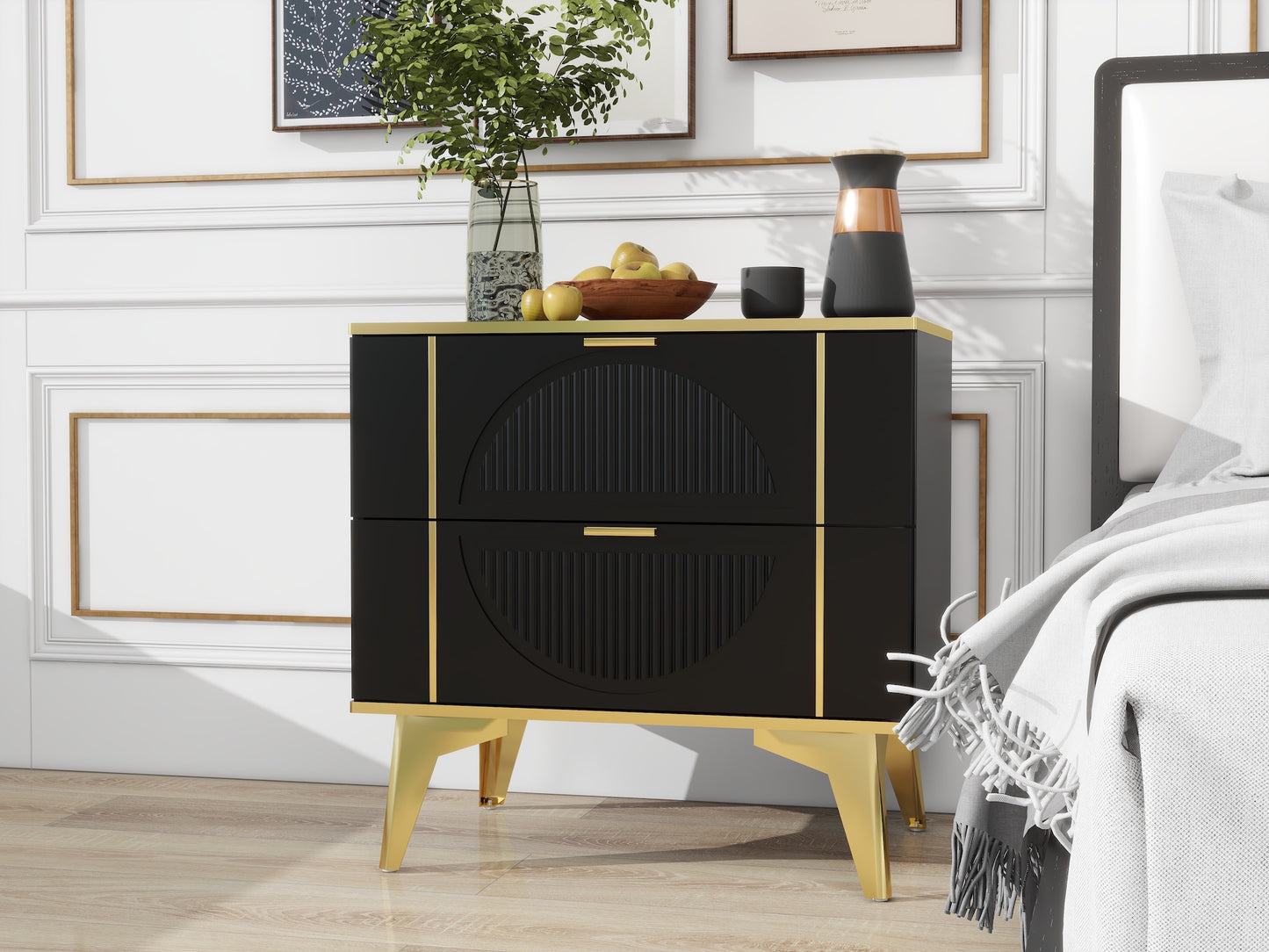 Two Pack Black 2 Drawer Round Card Gold Bar Blister Nightstand