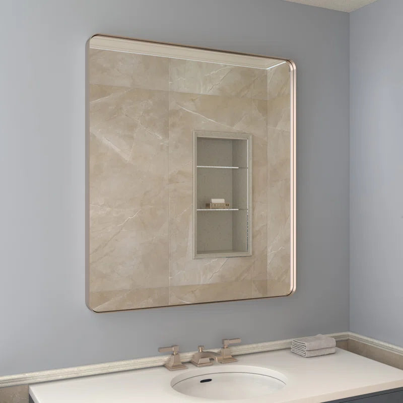 32" x 36" (Silver) Filleted Corner Wall Mounted Mirror, Bathroom Mirror, Vanity Wall Mirror With Metal Frame