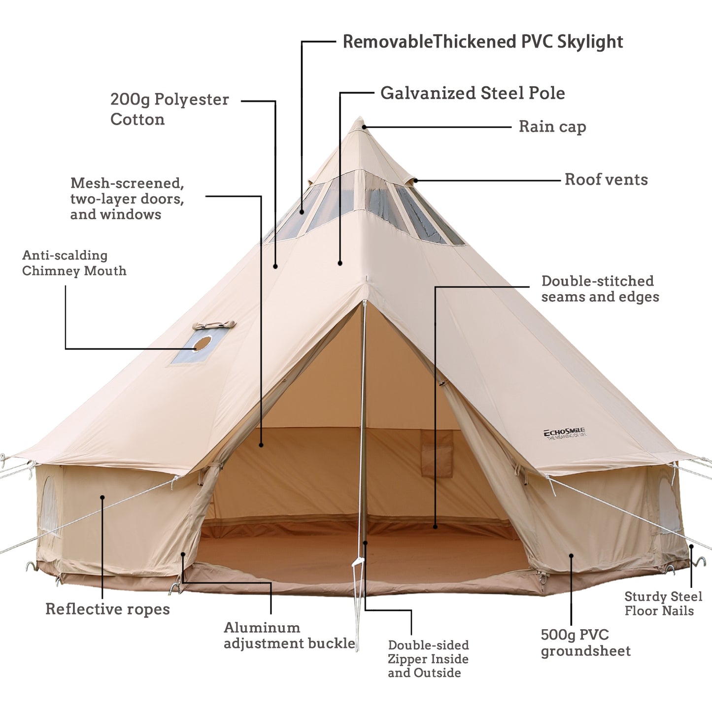 【QUALITY UPGRADE】We have improved our tent to achieve higher quality. The main improvement is of fiberglass tent pole. We cover junction of tent pole with heavy-duty steel protection tube, which adds more weight capacity to and prevents accidental breaking of tent pole to a large extent.