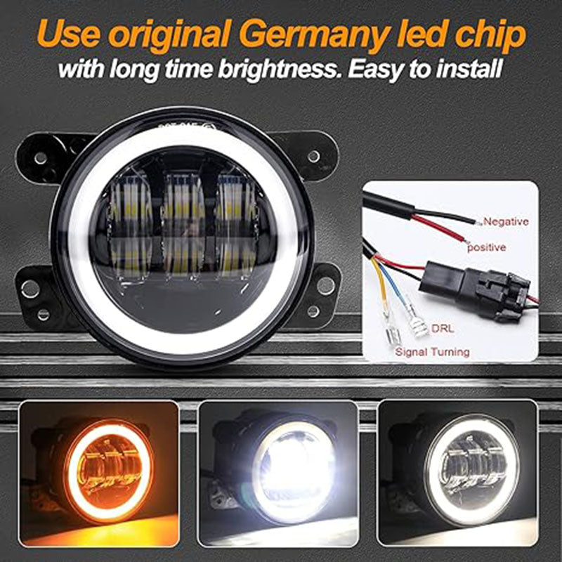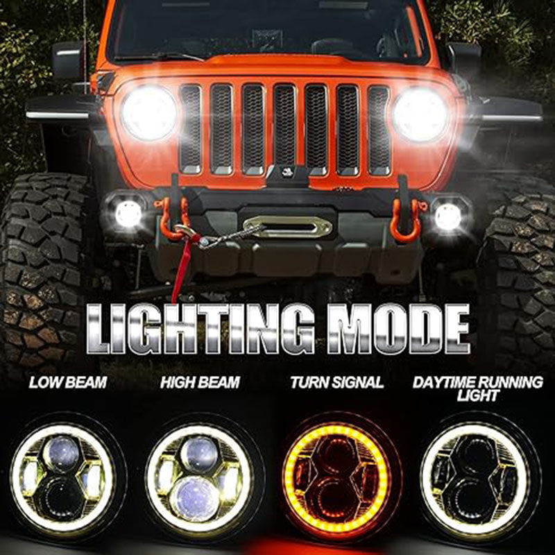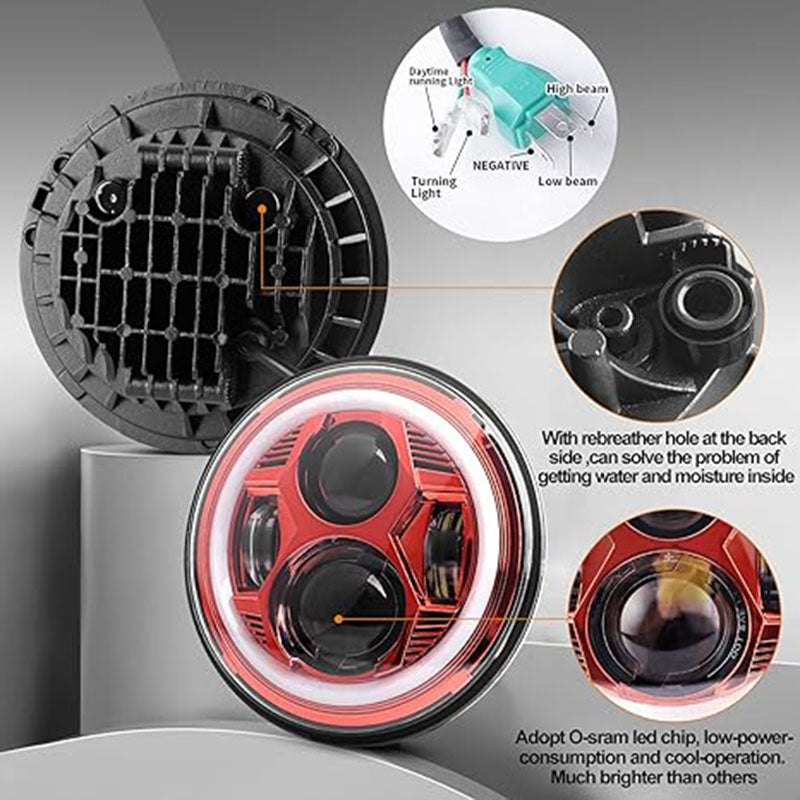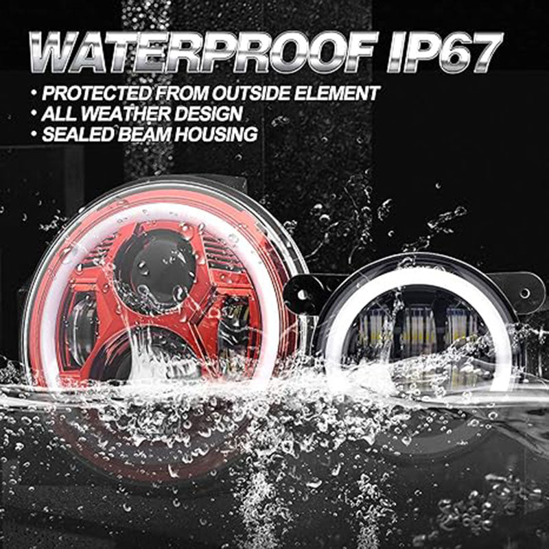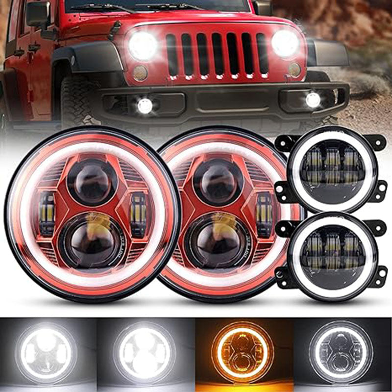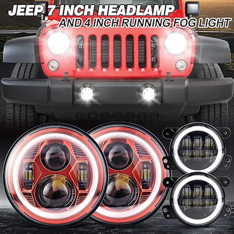 7-inch Spider Headlights - Red With Halo - 4-inch Fog Lights Black - With Halo - 4pcs In Set