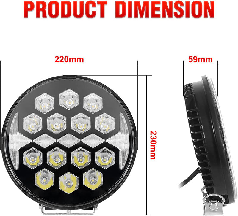 - High Performance: Power: 80W. Color Temperature: 6000K. Combo beam: Spot beam and flood beam. Working Temperature: -40 ~ 65 °C. LED Number: 14pcs*6w high intensity LEDs + 9pcs DRL LEDS.