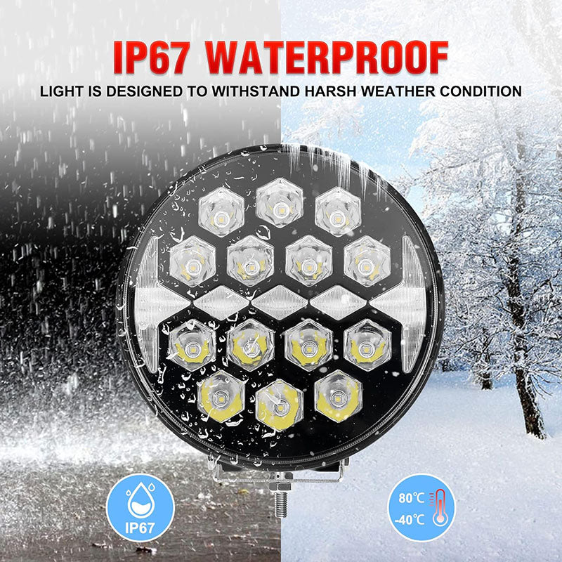 - High Quality: Diecast aluminum housing is durable and lightweight. Premium PMMA lens with high light transmission. IP67 rated waterproof, dustproof and shockproof, can work well in harsh weather condition such as heavy snowy and rainy. Lifespan over 50, 000 hours.