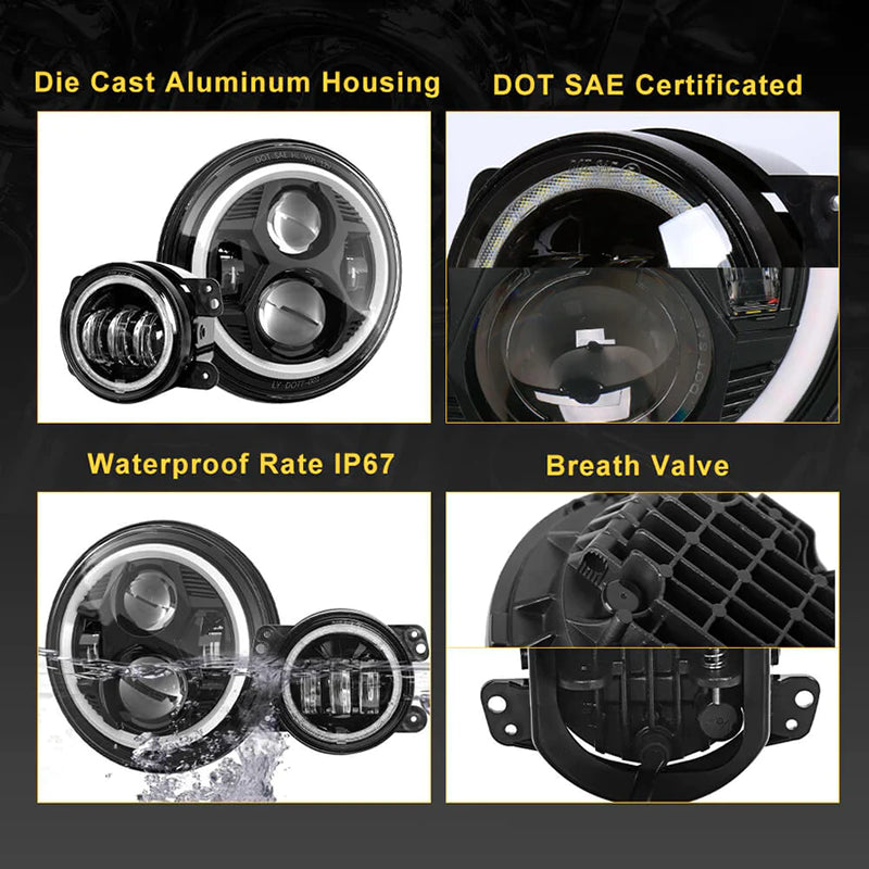 - High Performance Halo Headlights and Fog Lamp. C ree LED chips provide a brighter, crisper and whiter light output, closer to the color temperature of daylight, dramatically improving light projection distance and overall visibility. Over 50,000 Hours Lifespan.