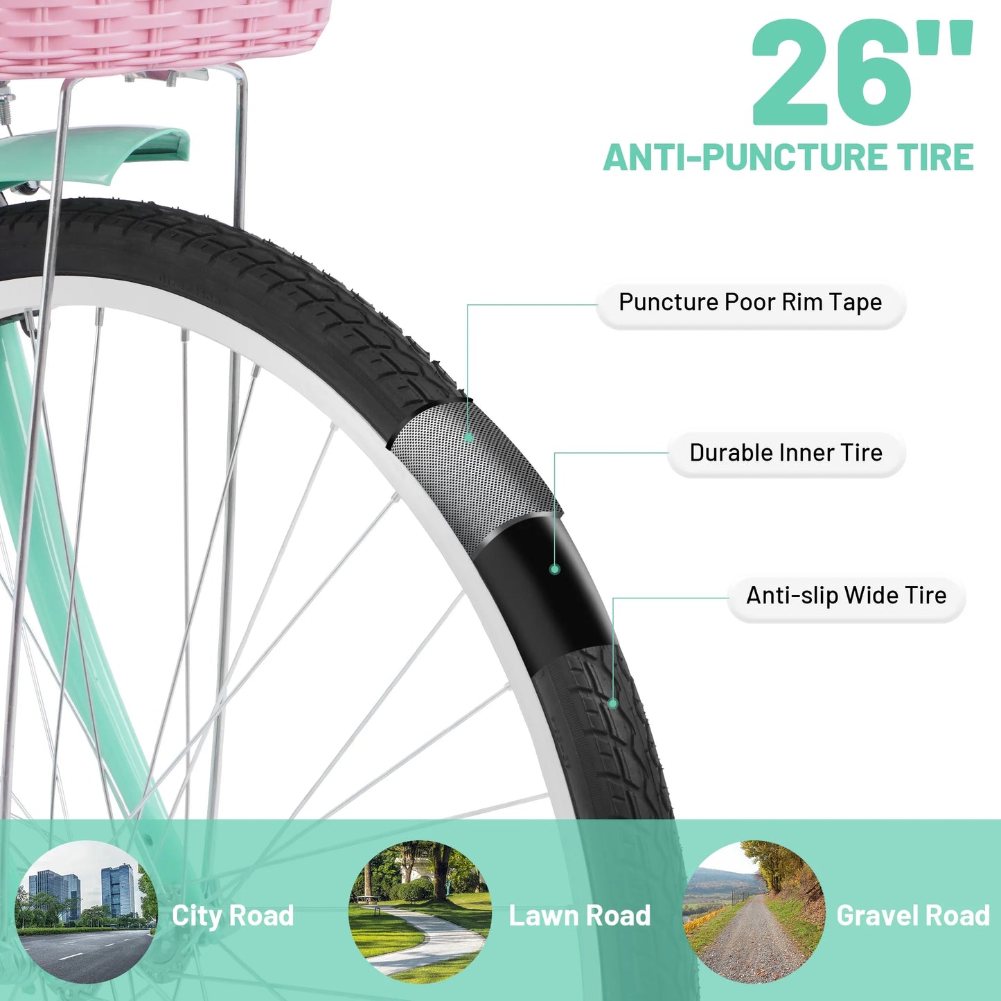 - 🌸[Comfortable Riding]: The 26" wheels combined with the 16" steel frame make it easy to get on and off the 26in bike, and with the adjustable seat, you can easily adjust it to the height that suits you best. The soft seat and comfortable grips, combined with WANDA's high-quality tires, provide a comfortable, cushioned, and stable riding experience.