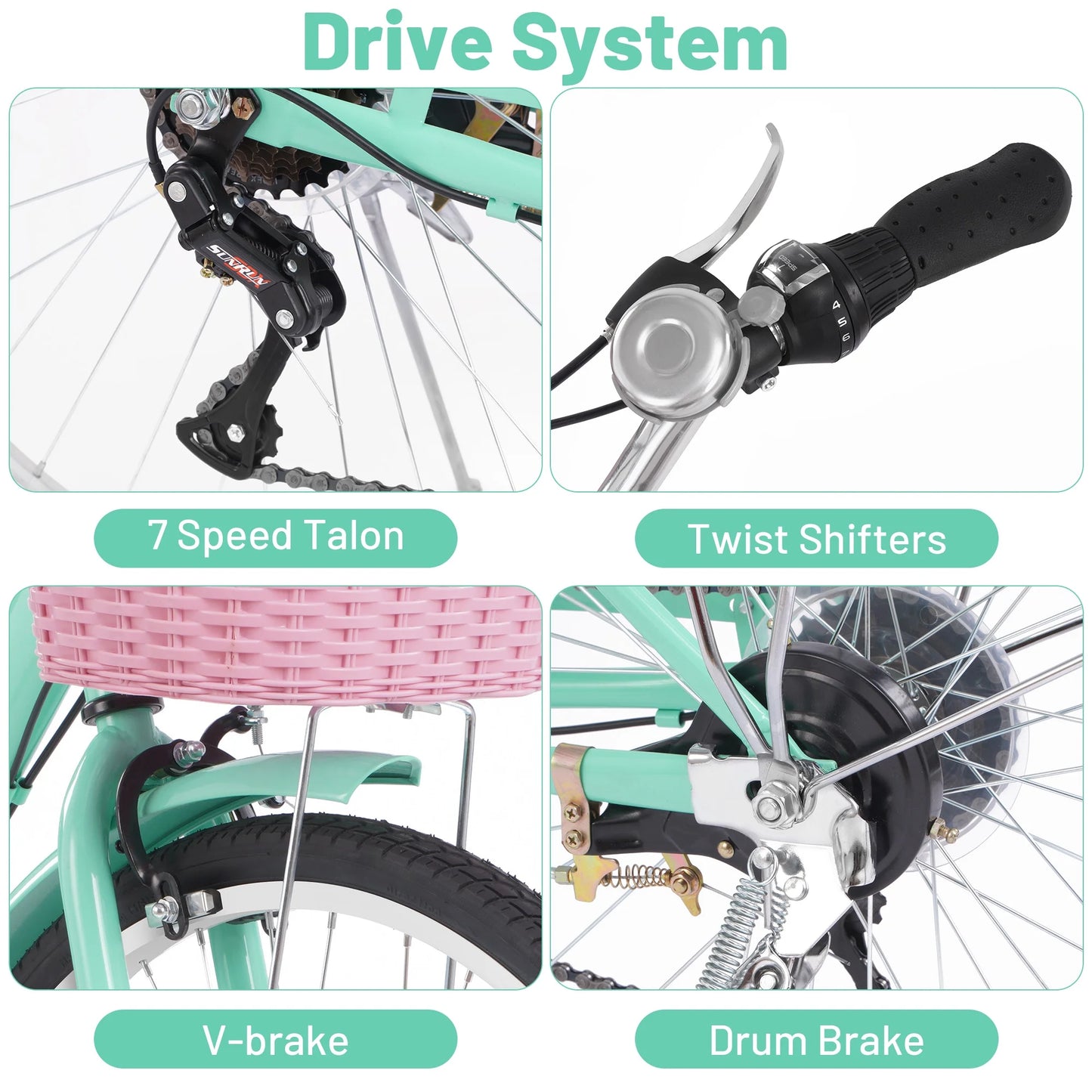 - 🌸[26in 7 speed bike]: Our women's bike is designed with 7 speed shifter and derailleur. The chainstay is enlarged or reduced by the derailleur, which makes it possible to drive the bike forward with less effort and to face uphill and long distances with ease.