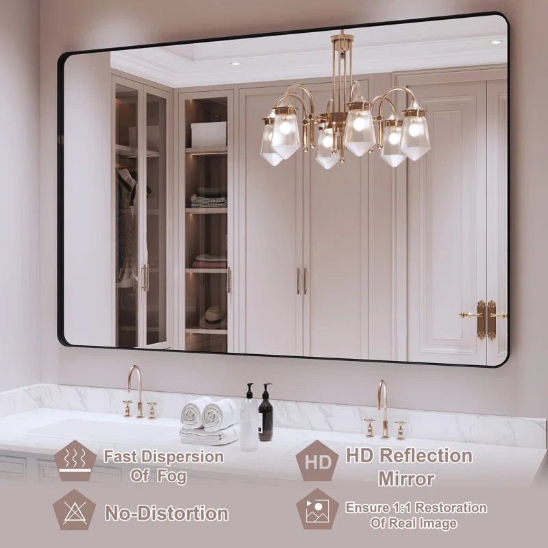 - Strong and safe the stylish matte black/ brushed nickel frame enhances the overall robustness and security of the mirror. This wall mirror is made of an aluminum frame that differs from standard mirrors, it features shatter-proof burst-proof. Safe and stable, waterproof, non-rusting, non-deformed shape.
