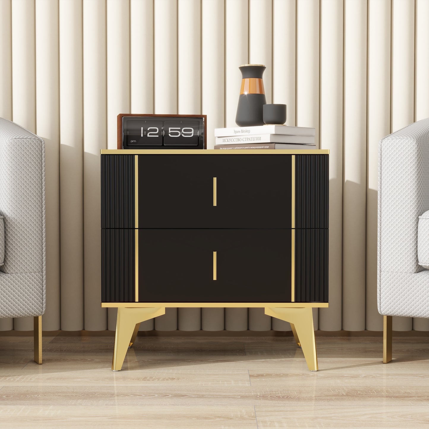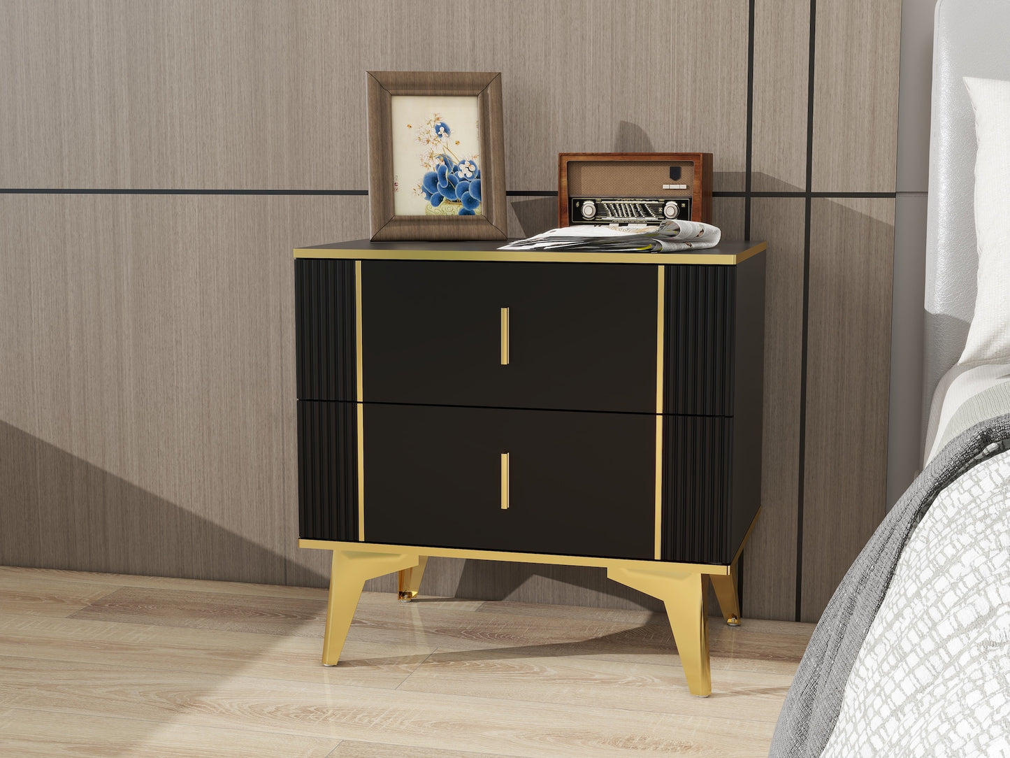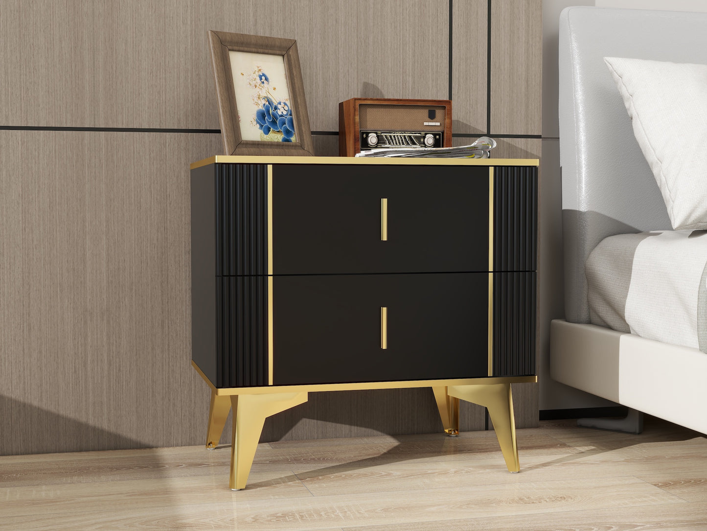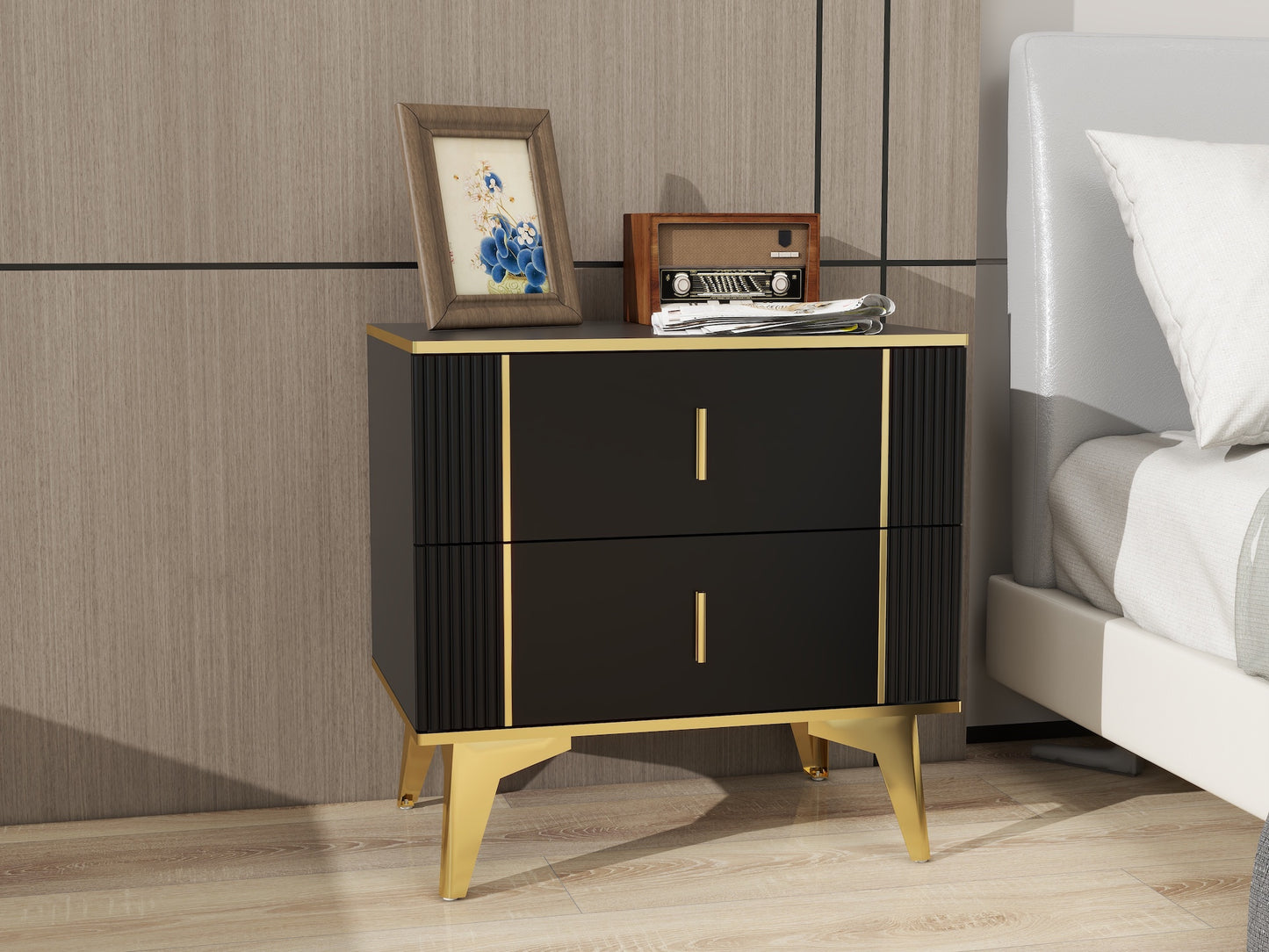 With its simple yet elegant design, this 2 drawer card gold bar nightstand adds a touch of unique charm to the bedroom space. The nightstand has smooth lines and a solid structure, and the card gold bar decoration makes the overall appearance more stylish and exquisite. The design of the two drawers is not only convenient for storing daily necessities, but also makes the overall appearance more neat and beautiful. The color matching of the nightstand is just right, and it can be easily integrated into various styles of bedroom decoration, bringing a comfortable and pleasant experience for the residents.