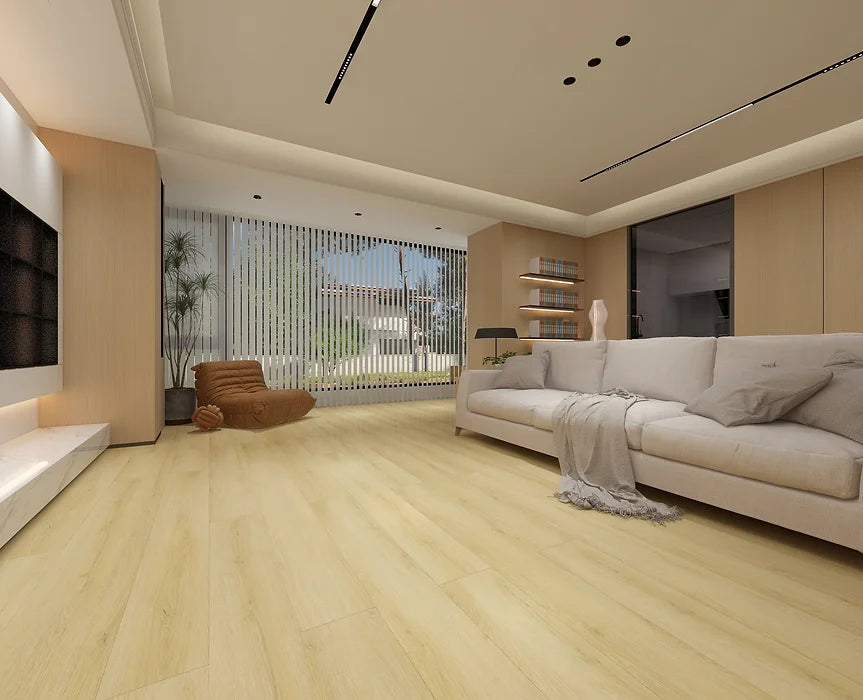 TYAS-409 Sahara Beige-Tyann 6MM SPC Flooring | 7"x48" Planks, Embossed Texture, 20Mil Wear Layer, Urethane Finish, Valinge 2G Locking, 15-35 Year Warranty, 40 Lbs/Box,100% Waterproof