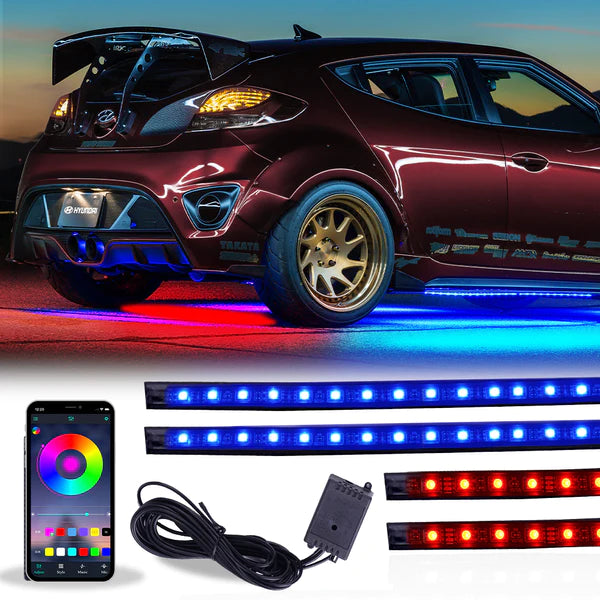 ● Higher Luminosity & DIY Music Sync: High Intensity SMD 5050 LED Chips. 3 In 1 RGB Chips, Brighter Output ,Uniform Lighting. Enhances the Look and Feel of your Vehicle with Brilliant Lighting Effects.With a mic on phone, you can sync your music to your car lights with ease.